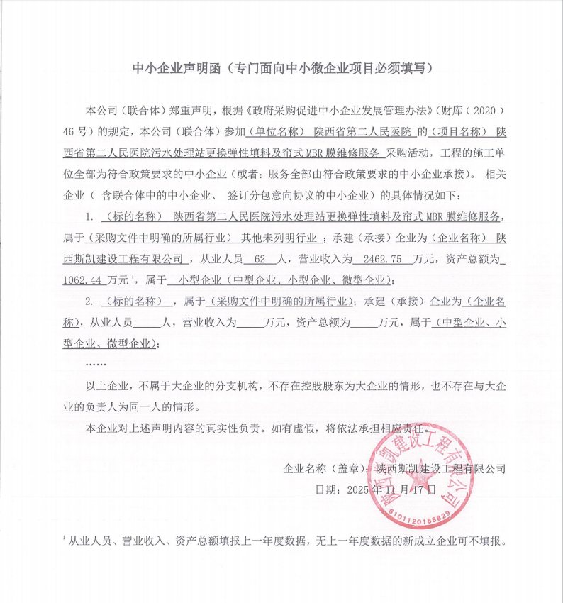 | 附件3 | 3-297 陕西省第二人民医院污水处理站更换弹性填料及帘式MBR膜维修服务磋商文件 11.11定稿.doc | ||
