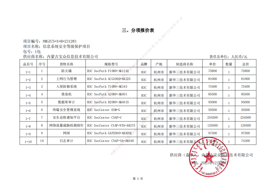 原公告的合同包1(信息系统安全等级保护项目)中标供应商(第1候选人):内蒙古合木数字科技有限公司,更正为:内蒙古宝众信息技术有限公司。