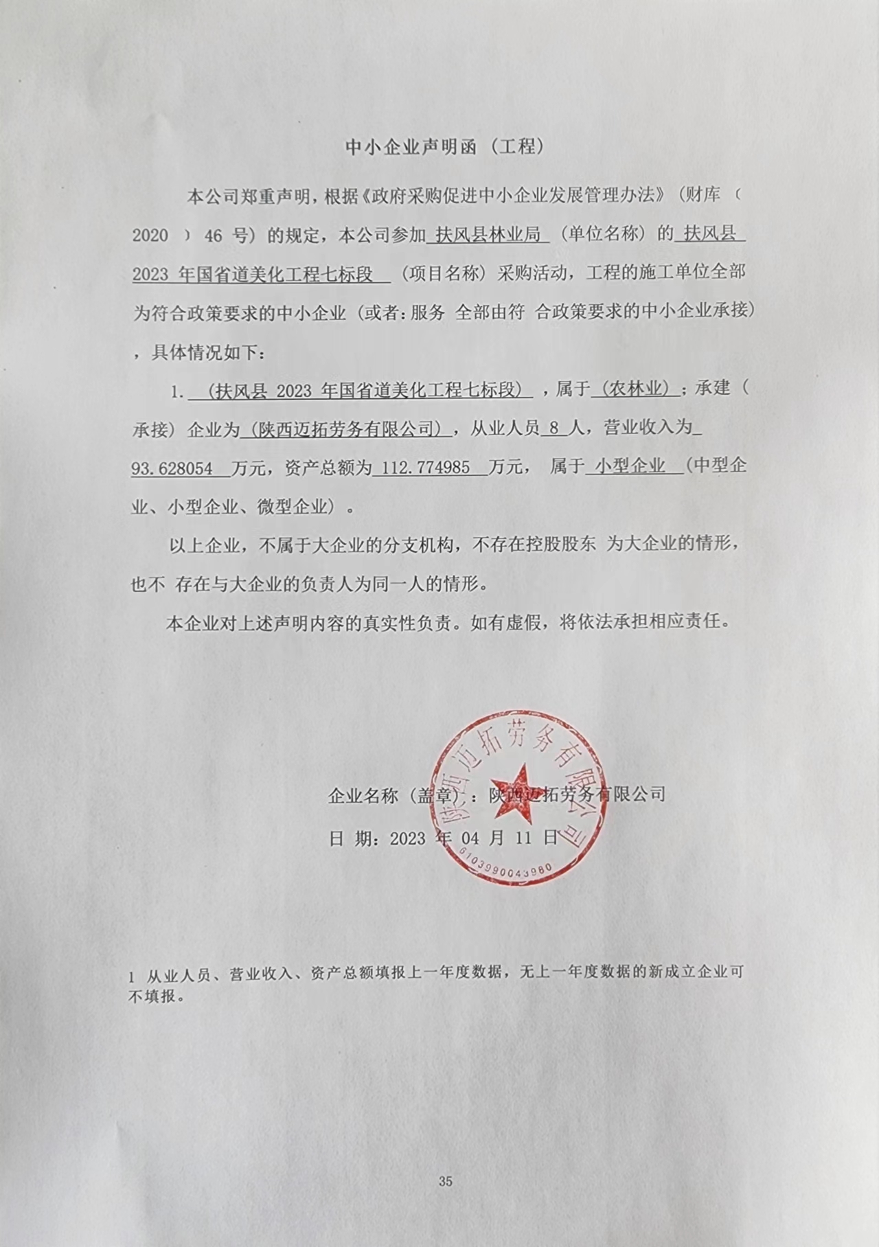 | 附件6 | 4标段中小企业声明函 | ||