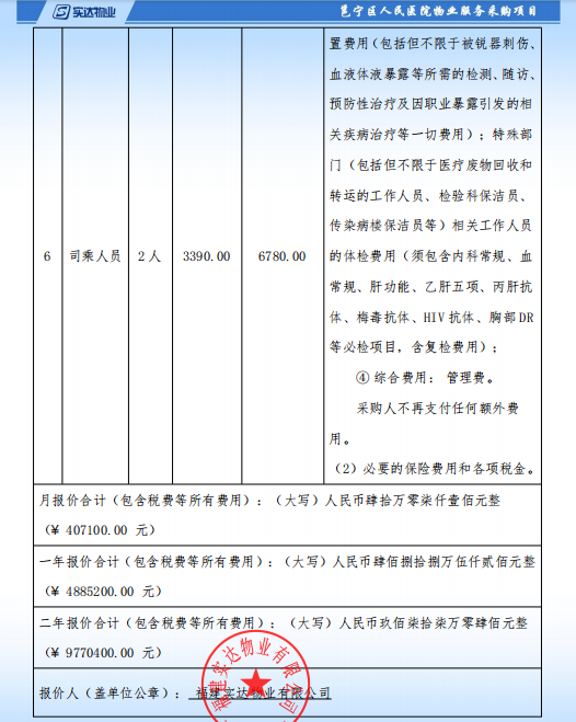 | 1 | 报价:9770400(元) | 福建实达物业有限公司 | 福建省福州市鼓楼区善化新村8座2层 |