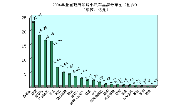2004年全国政府采购小汽车总规模为154.7亿元,具体情况见图六。