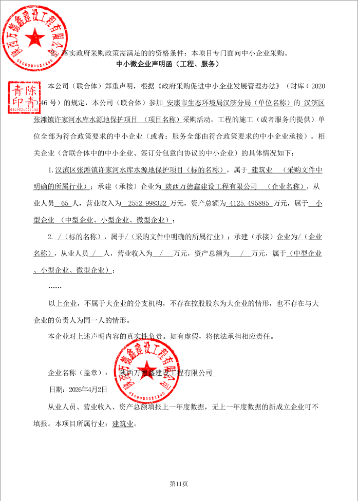 | 附件1 | 安康市生态环境局汉滨分局汉滨区张滩镇许家河水库水源地保护项目中标(成交)明细.pdf | ||