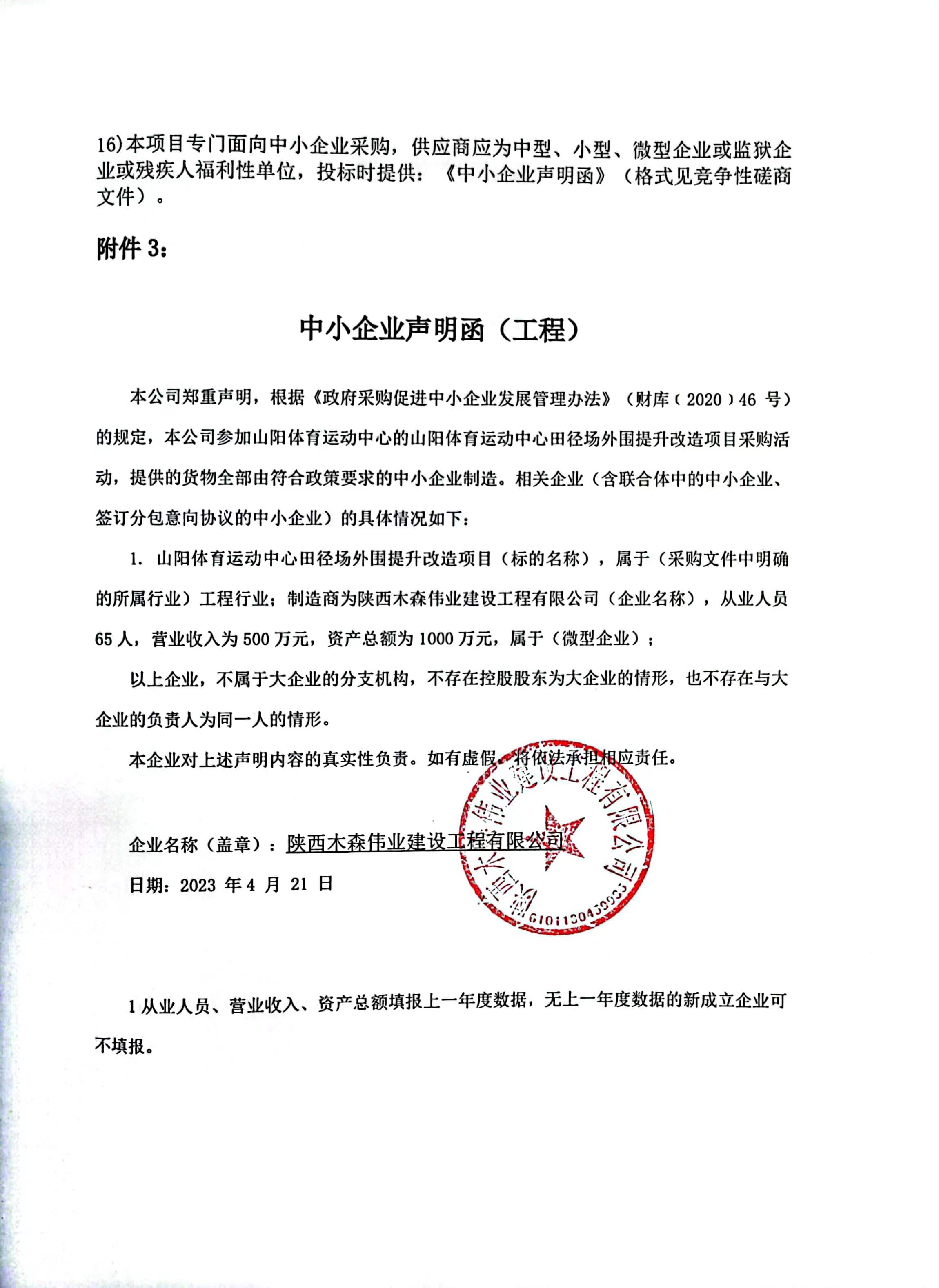 | 附件1 | 中小企业声明函 | ||