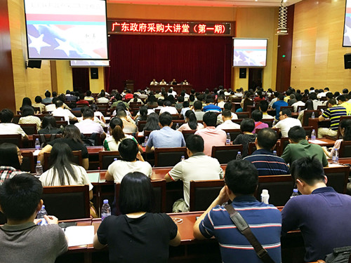 首期“广东政府采购大讲堂”主题为“全球视角下的政府采购”。主讲人为政府采购专家、国际关系学院公共市场与政府采购研究所所长赵勇和国际关系学院孟晔副教授。两位资深专家分别做题为“美国联邦采购制度概览”和“中国与政府采购协议(GPA)”主旨演讲,演讲内容精彩,引人入胜,现场气氛热烈,掌声不断。