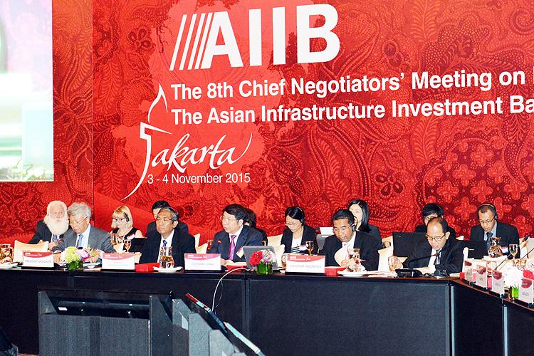 11月3日至4日,筹建亚洲基础设施投资银行第八次首席谈判代表会议在印度尼西亚首都雅加达举行。会议由筹建亚投行首席谈判代表会议常设主席、中国财政部副部长史耀斌和会议联合主席、印度尼西亚首席谈判代表哈迪延托共同主持,亚投行意向创始成员国谈判代表和亚投行候任行长金立群等出席会议。香港特别行政区派员作为中国政府代表团成员参加了会议。
