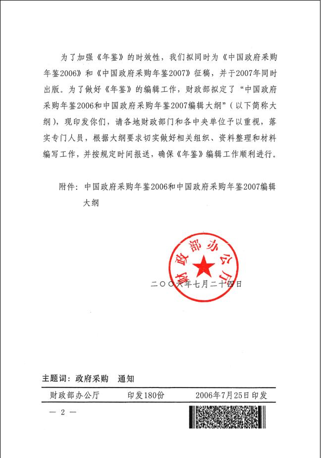 附件:中国政府采购年鉴2006和中国政府采购年鉴2007编辑大纲